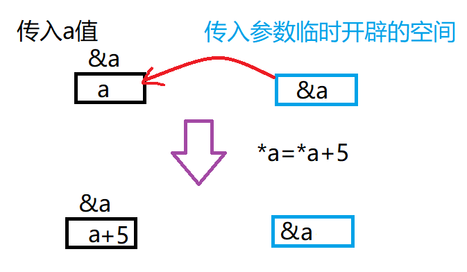 答:其实在传入参数的时候系统临时开辟了一块空间用来接收数据,函数调用结束时这一块空间就会被释放,这意味着如果我们直接传入a的值,我们只是在对这一块临时开辟的空间内的数据进行修改,无论如何都不会影响到a,但如果我们传入的是a的地址,对a进行解引用就能直接找到并修改a。