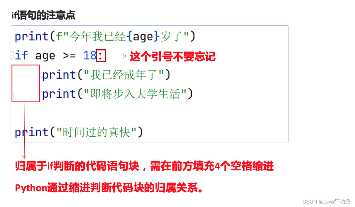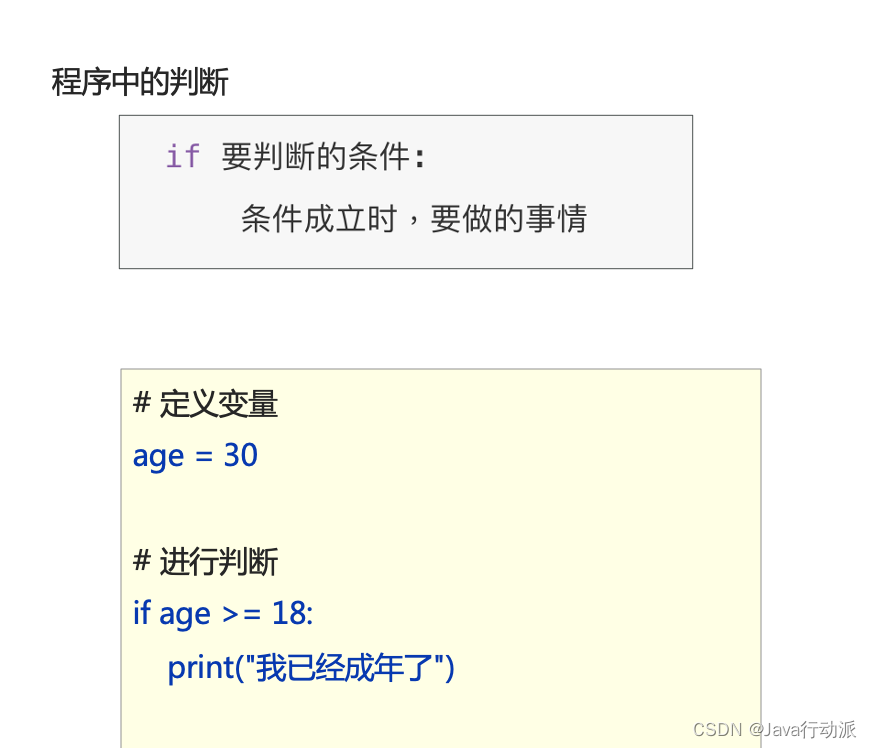 if age > 20:print("你已经成年了")# if else