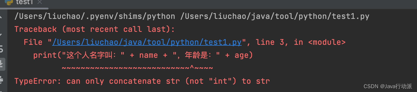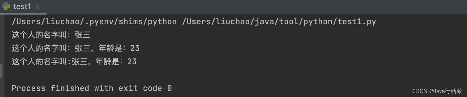 # print("这个人名字叫:" + name + ",年龄是:" + age)"""方式一