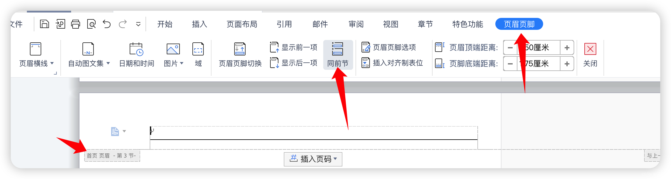 因此也要对页面进行切割 :在wps中叫取消同前节,在word 叫取消链接上一条页眉