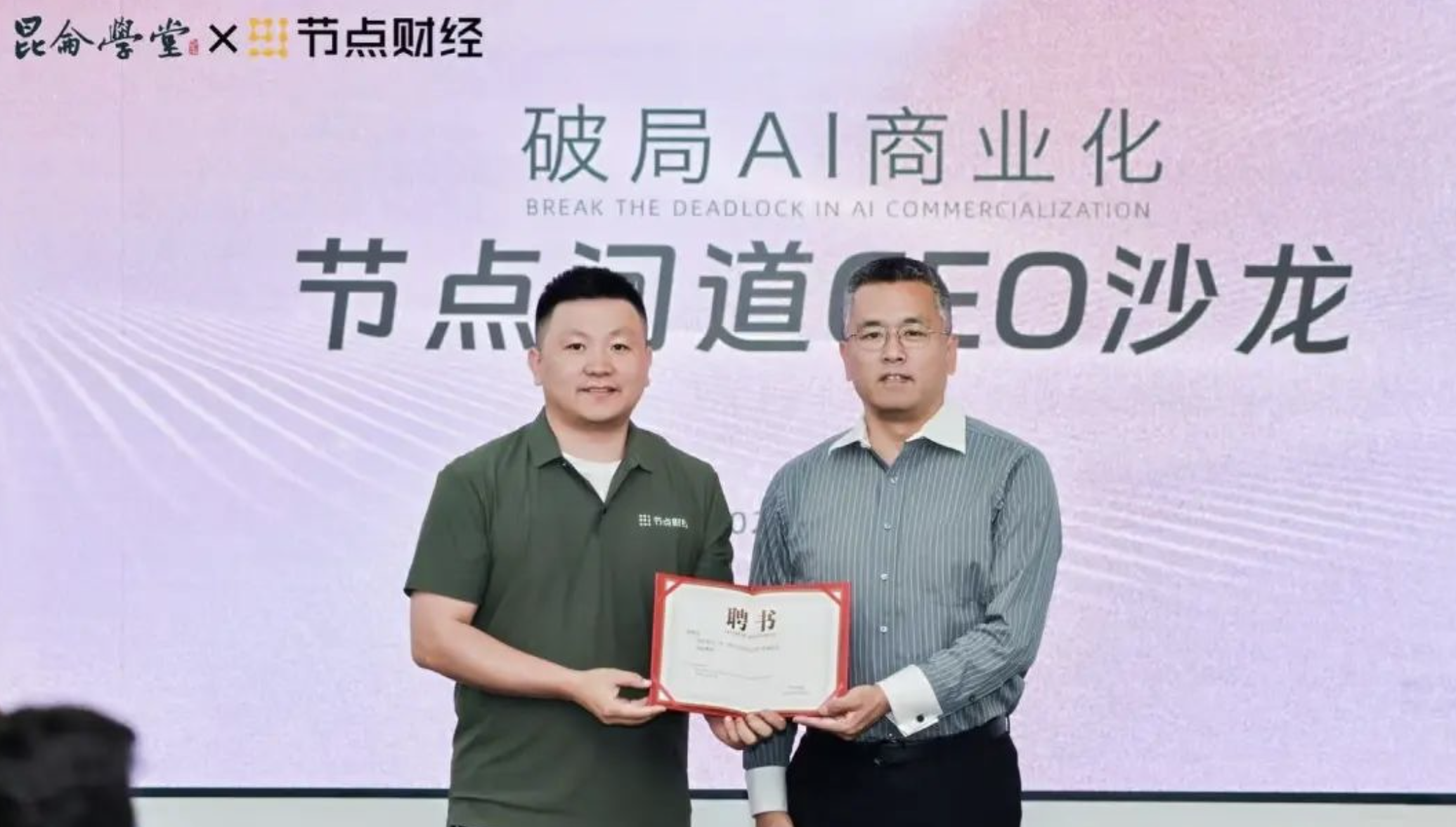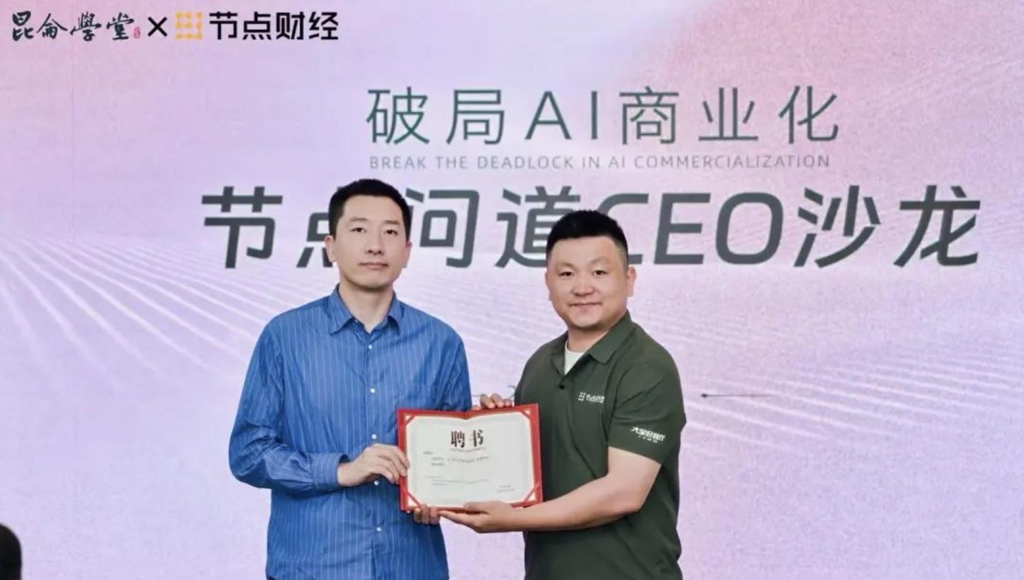 5月29日,由《节点财经》&《昆仑学堂》联合主办的“节点问道CEO沙龙”在北京举行。本次沙龙的主题为“破局Al商业化”。