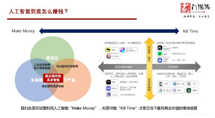 那么,究竟哪些落地场景更适合创业者深耕突破?蓟门瀚海资本(新加坡) 管理合伙人柏铖回答了这个问题。他指出,AI 的发展并非线性跃升,而是在突破技术瓶颈中螺旋前进。柏铖认为,AI 的价值不仅在于效率提升,更在于情绪价值的创造。“我们总是在试图利用人工智能Make Money,但是可能Kill Time才是它当下最有商业价值的落地场景。”