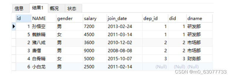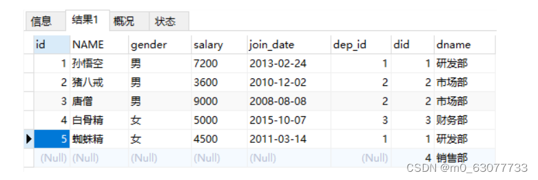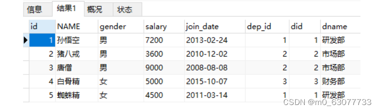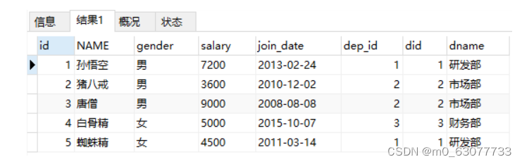 WHEREemp.job_id = job.id;-- 方式二 :显式内连接