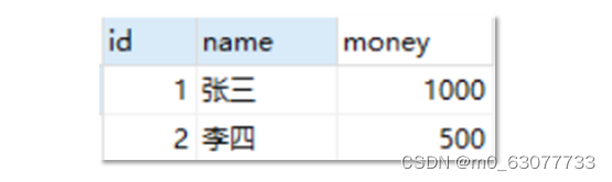INSERT INTO account(name,money) values('张三',1000),('李四',1000);
