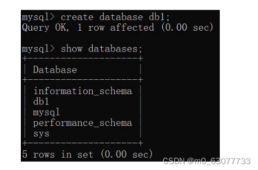我们可以在数据库安装目录下的data目录下看到多了一个 db1 的文件夹。所以,在MySQL中一个数据库对应到磁盘上的一个文件夹。