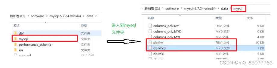 而一个数据库下可以创建多张表,我们到MySQL中自带的mysql数据库的文件夹目录下: