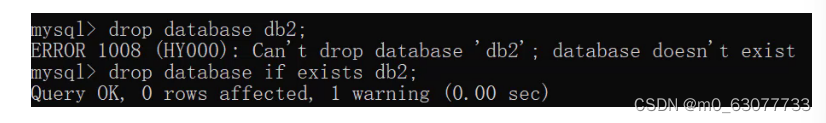 而在创建数据库的时候,我并不知道db1数据库有没有创建,直接再次创建名为db1的数据库就会出现错误。