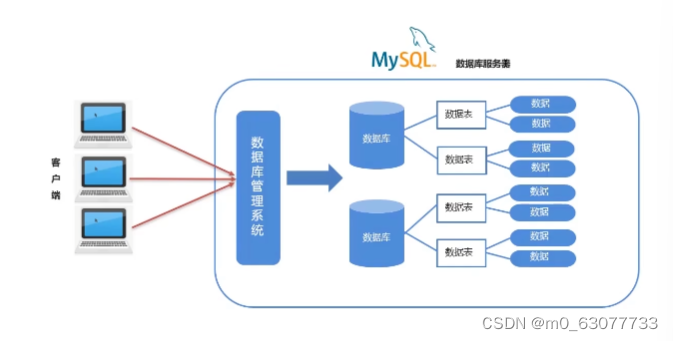 在电脑上安装了数据库管理系统后,就可以通过数据库管理系统创建数据库来存储数据,也可以通过该系统对数据库中的数据进行数据的增删改查相关的操作。我们平时说的MySQL数据库其实是MySQL数据库管理系统。