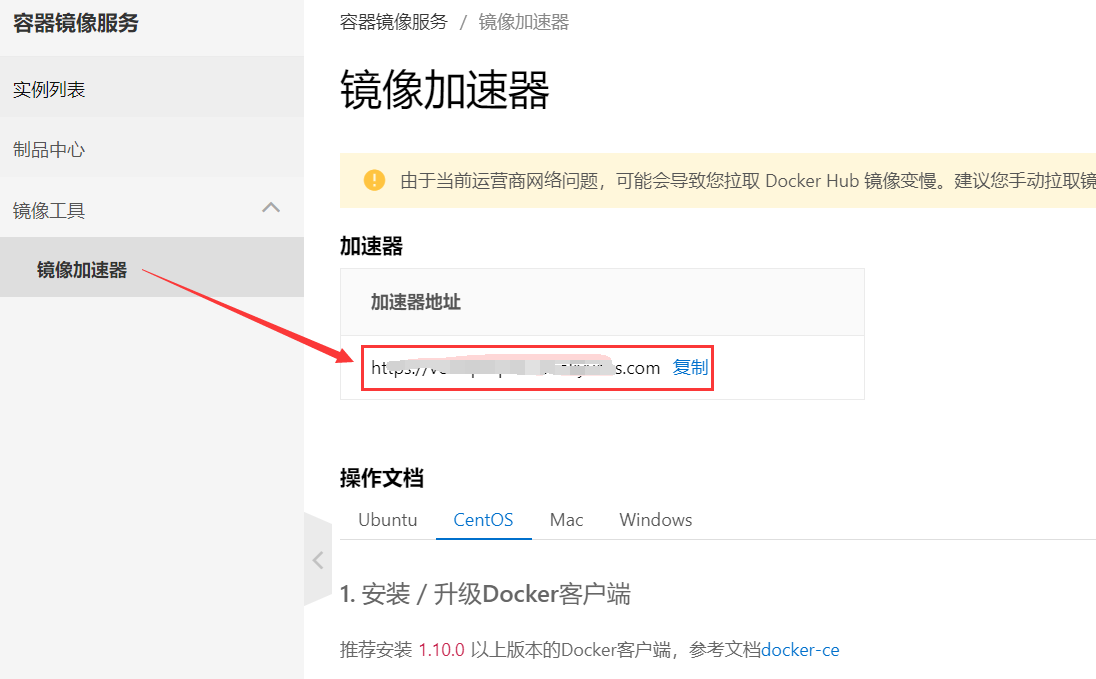 镜像加速器地址,每个人都不一样,拷贝加速器地址