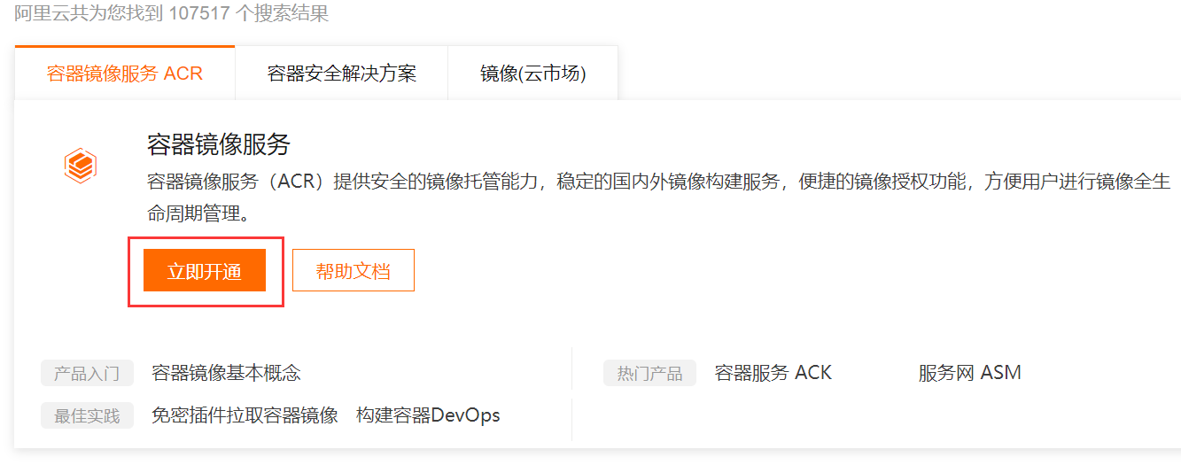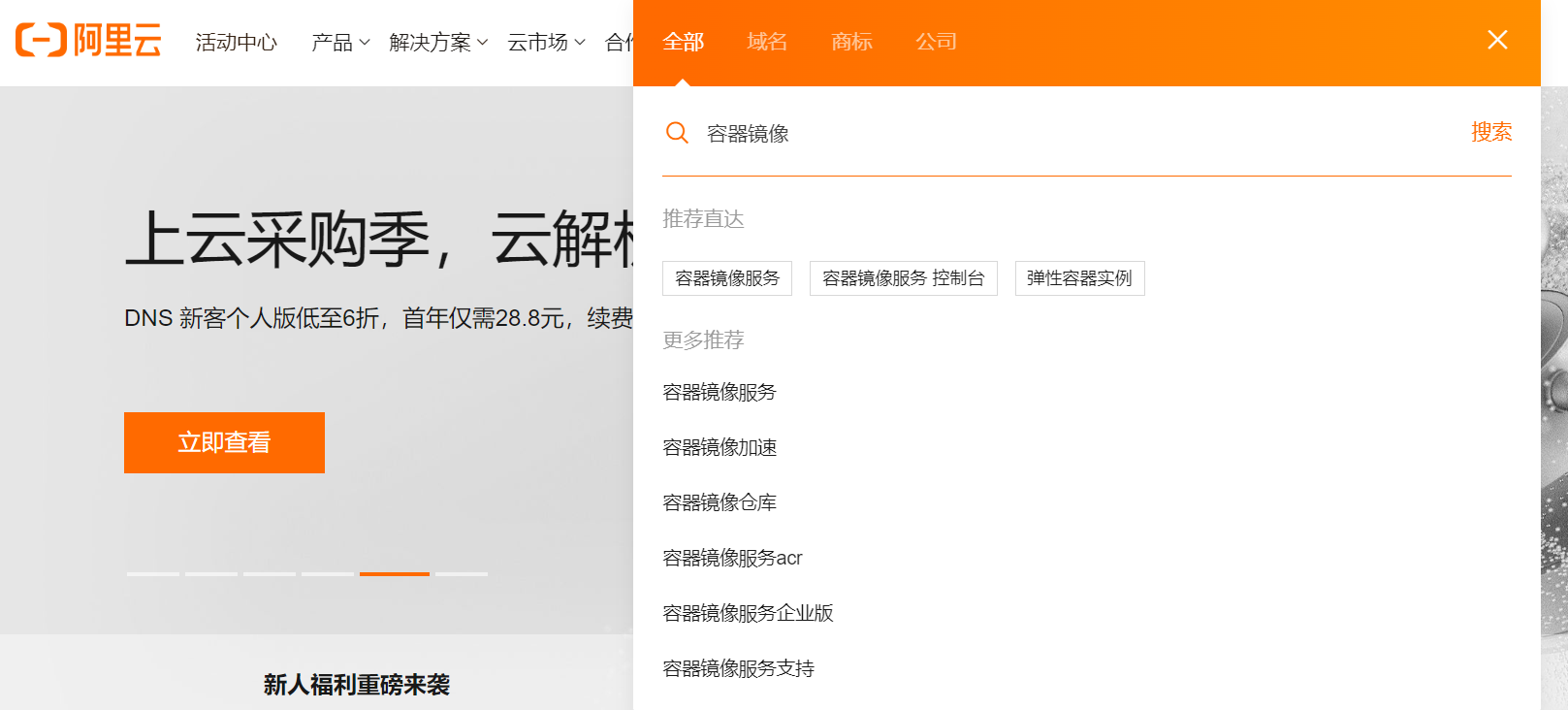 登陆阿里云开发者平台,找到“容器镜像服务”