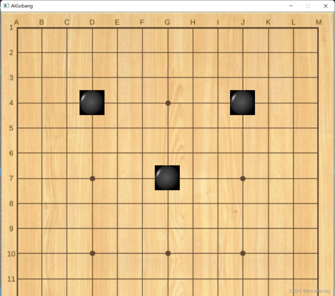private:IMAGE chessBlackImg; // 黑棋棋子IMAGE chessWhiteImg; // 白棋棋子int gradeSize; // 棋盘的大小(13线、15线、17线、19线)int margin_x; // 棋盘的左侧边界int margin_y; // 棋盘的顶部边界float chessSize; // 棋子的大小(棋盘的小方格的大小)/*存储当前棋局的棋子分布数据例如:chessMap[3][5]表示棋盘的第3行第5列的落子情况(0:空白;1:黑子;-1:白子)*/vector> chessMap;/*表示现在该谁下棋(落子)true:该黑子走;false:该白子走*/bool playerFlag;