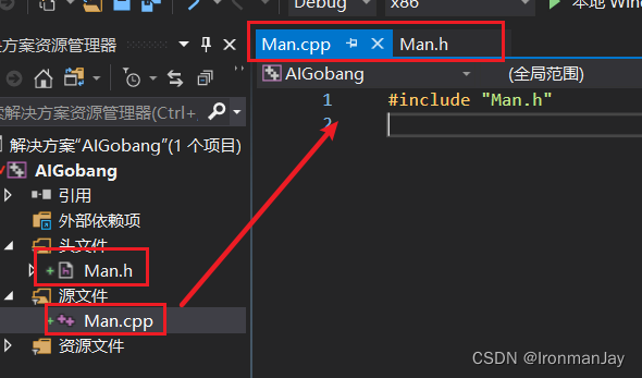 同理,Man.h中的代码如下: