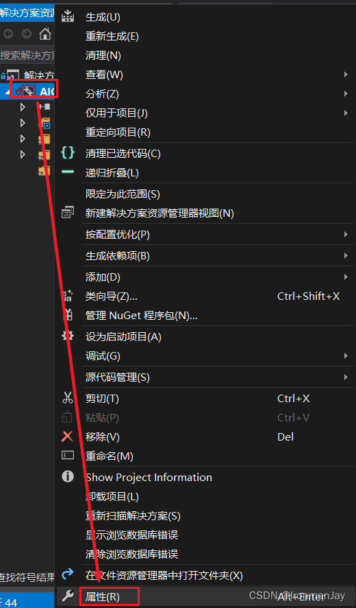 在项目上右键后,点击“属性”: