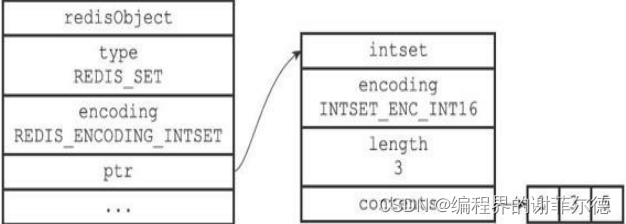 intset编码的集合对象使用整数集合作为底层实现,集合对象包含的 所有元素都被保存在整数集合里面