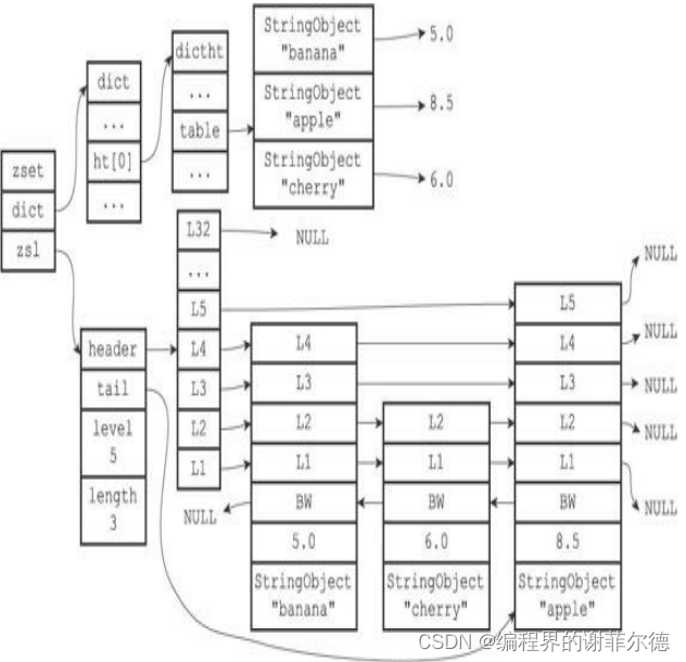 如果前面price键创建的不是ziplist编码的有序集合对象,而是skiplist编码的有序集合对象,