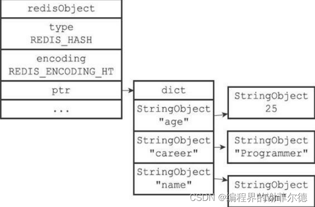 ·字典的每个值都是一个字符串对象,对象中保存了键值对的值