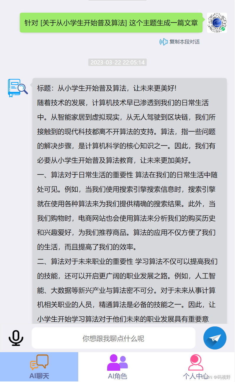 例: [关于从小学生开始普及算法] 这个主题生成一篇文章