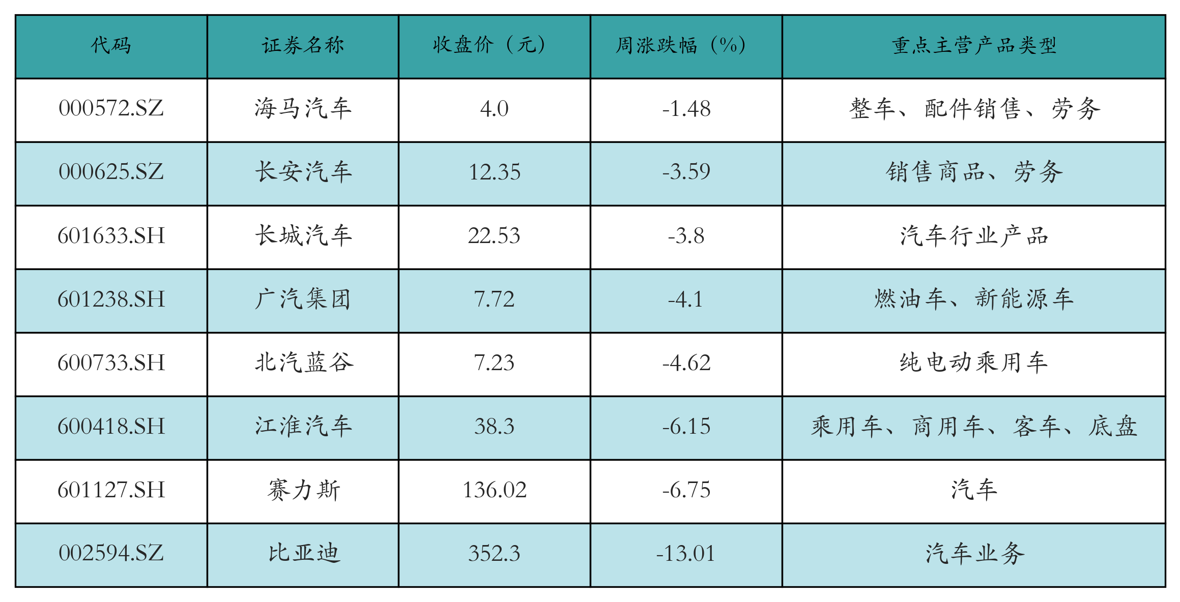 1.新能源汽车相关板块一周行情梳理
