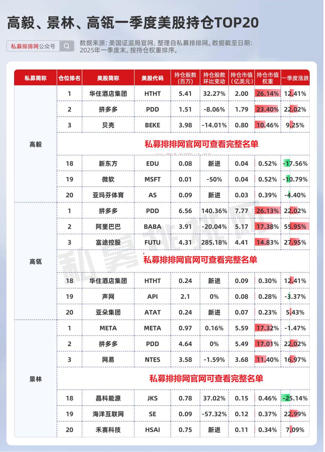 高毅、景林、高瓴美股持仓曝光!疯狂加仓中国资产!