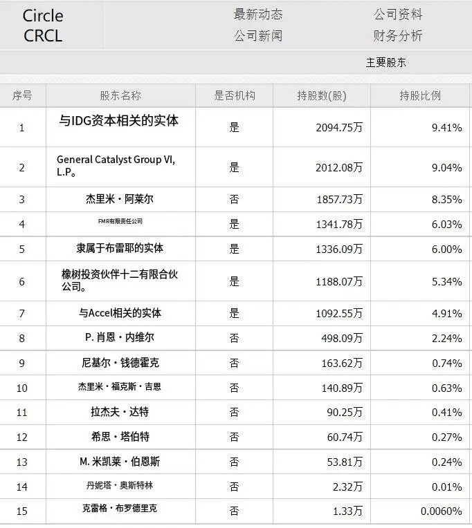 值得注意的是,华兴资本并未披露基金在Circle中的持股数量。从Circle的主要股东名录中,也未发现华兴新经济基金的身影。推测来看,其持股比例可能较低,或通过基金多层嵌套结构参与,未达到披露阈值。