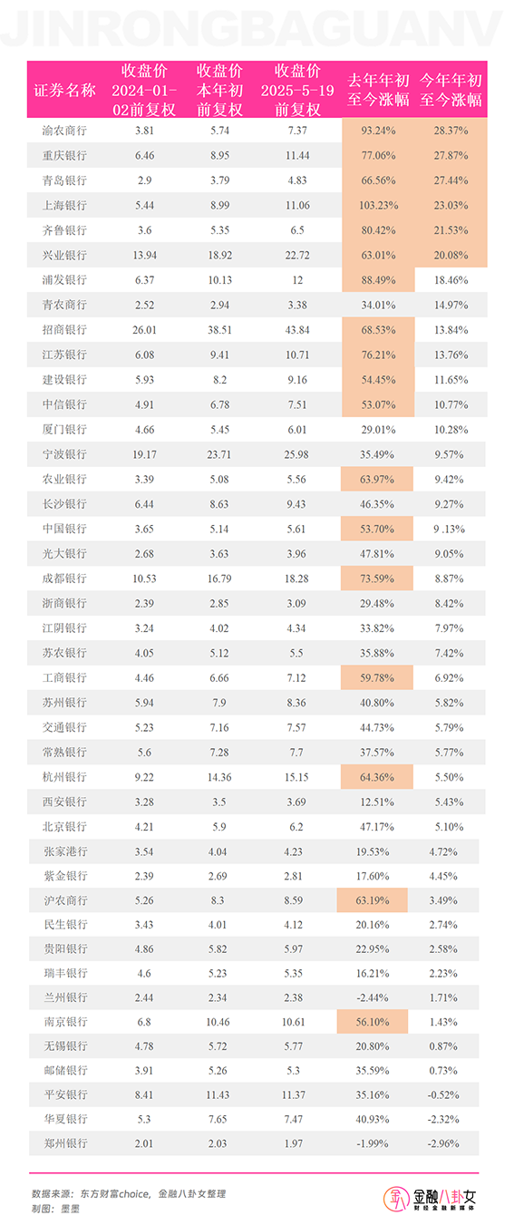 去年年初至今,42家上市银行中,只有2家股价下跌,就是郑州银行和兰州银行,分别下跌1.99%和2.44%。