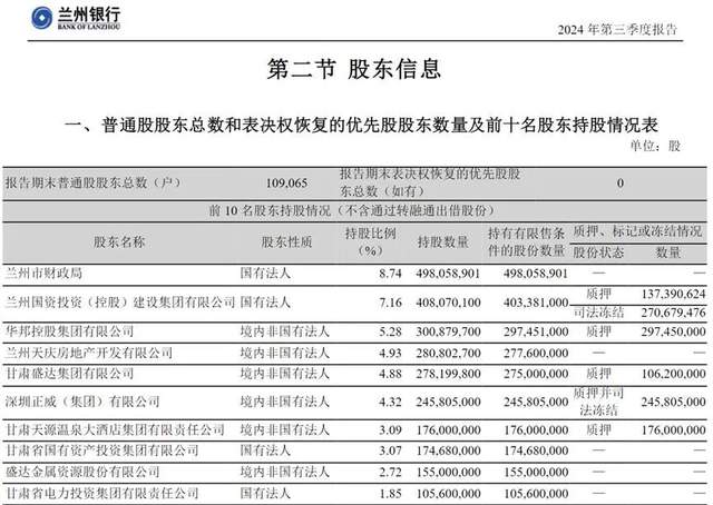 这个华邦集团是兰州银行的第三大股东,持股比例约为5.28%,已经全部质押,所以才被冻结。