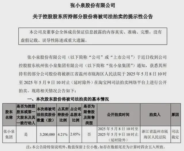 未来大概率会有更多股份被法拍,张小泉实控人易主是板上钉钉的事。