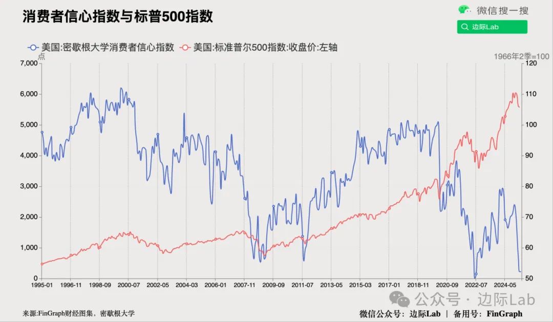 7. 密歇根大学的消费者信心调查涵盖了大量样本,整体能反映真实的公众情绪。但如果你把消费者信心作为买股信号,那它确实没有用。信心高点常出现在错误的时间,比如2000年1月和2007年1月,正好是科技泡沫和房地产泡沫破裂前夕;而情绪低点则出现在2009年春季牛市起点、2022年夏季美股大涨前夜——换句话说,普通美国人在判断经济时几乎一贯站错边。如果你在高点时认为克林顿或小布什是经济天才,你可能已满仓并在随后熊市中亏得惨不忍睹;如果你在低点坚信奥巴马或拜登是经济蠢货,那你大概率错过了两次千载难逢的“抄底”机会。