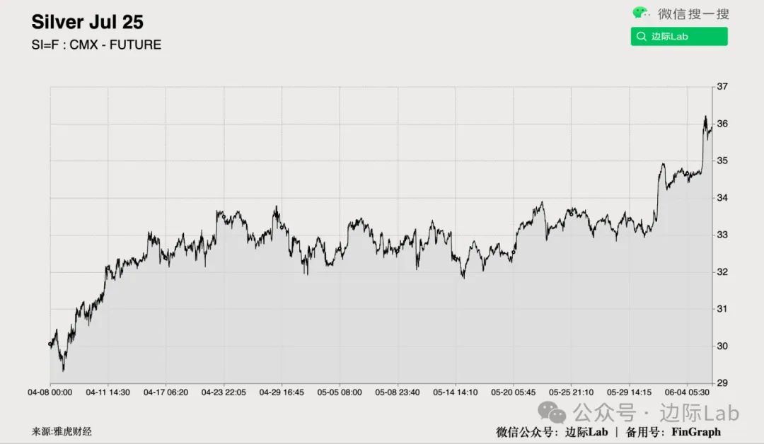 因多项数据暗示美国经济出现放缓迹象,银价周四升至每盎司35.60美元,创2012年2月以来新高。美国银行建议客户增持白银,理由是产能调整叠加太阳能需求强劲。法国巴黎银行则指出,中国光伏产量激增支撑银价,但警告单位发电容量所需用银量自2020年以来已下降近50%,未来需求增速或放缓。