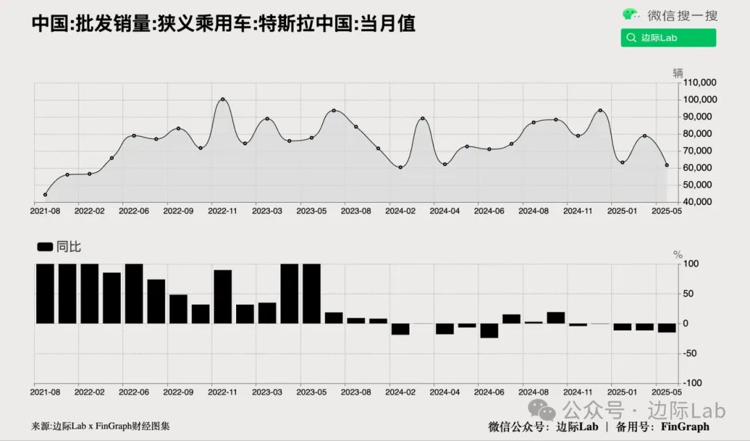 5.中国乘联会数据显示,特斯拉中国工厂5月在华交付汽车共计61,662辆,同比下降15%,为连续第八个月下滑,且跌幅较4月进一步扩大。在本土新能源车企加速推新和降价的背景下,特斯拉产品吸引力与价格优势正被逐步侵蚀。