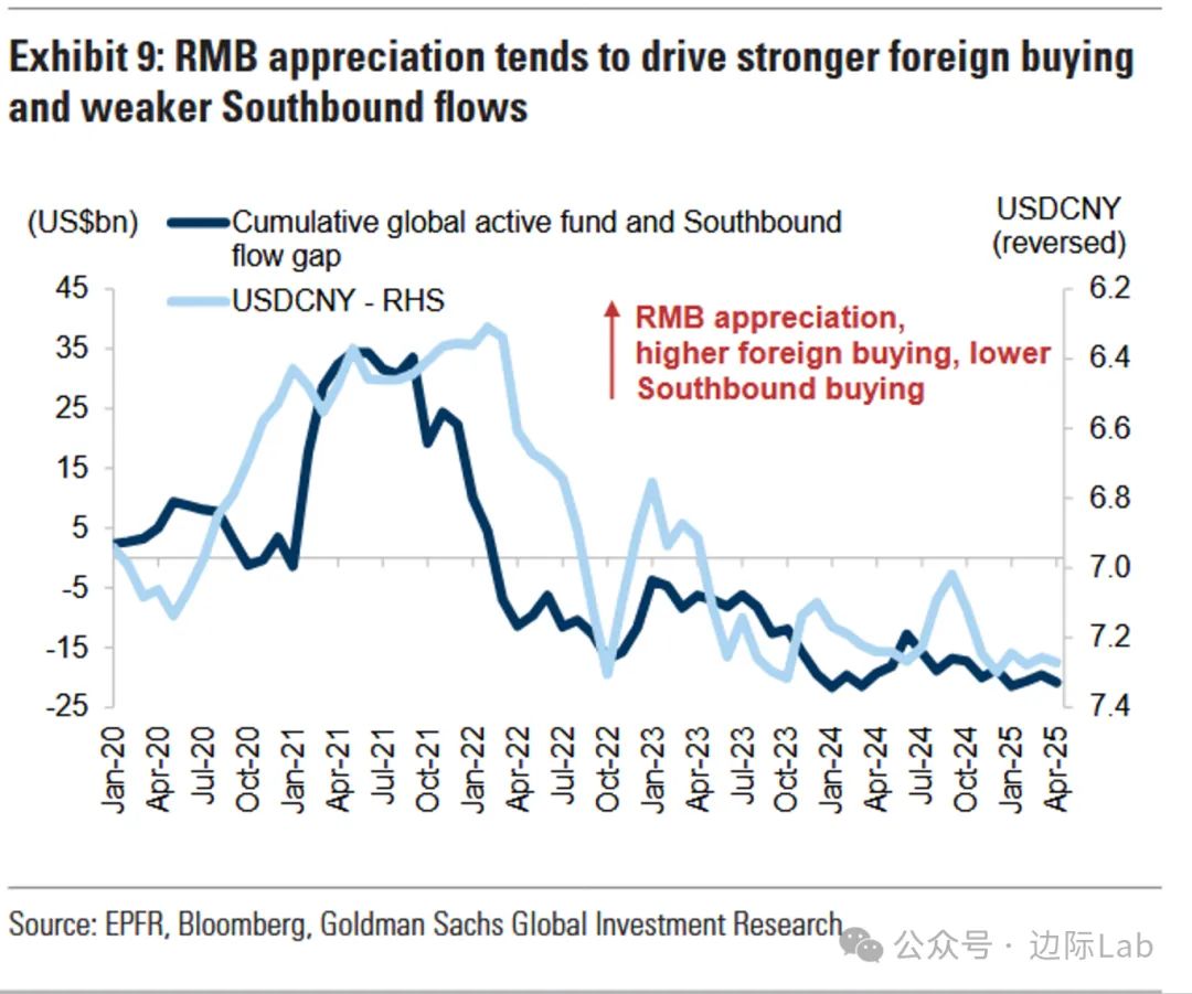 2.高盛表示,人民币兑美元的走强增强了其对中国股市的积极观点,主要体现在三方面:一是历史上汇率与股市呈正相关,有助于吸引外资流入;二是本币升值可带来以美元计价资产的汇兑收益,提升企业盈利预期;三是人民币升值通常伴随外资加仓、南向资金减速。