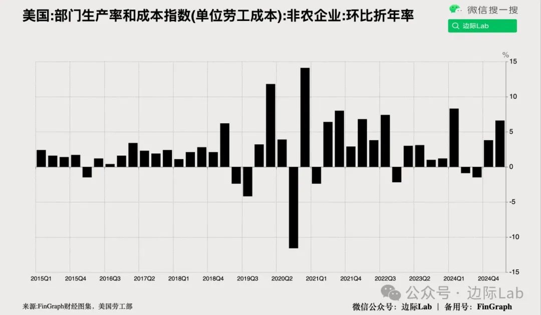5.美国2025年一季度非农企业单位劳动力成本环比折年率增长6.6%,高于初值5.7%,为小时薪酬增长5.0%、生产率下降1.5%的共同作用。该指标过去四个季度累计上涨1.9%。制造业单位劳动力成本同期增长2.0%,其中小时薪酬增长6.4%、生产率提升4.4%。