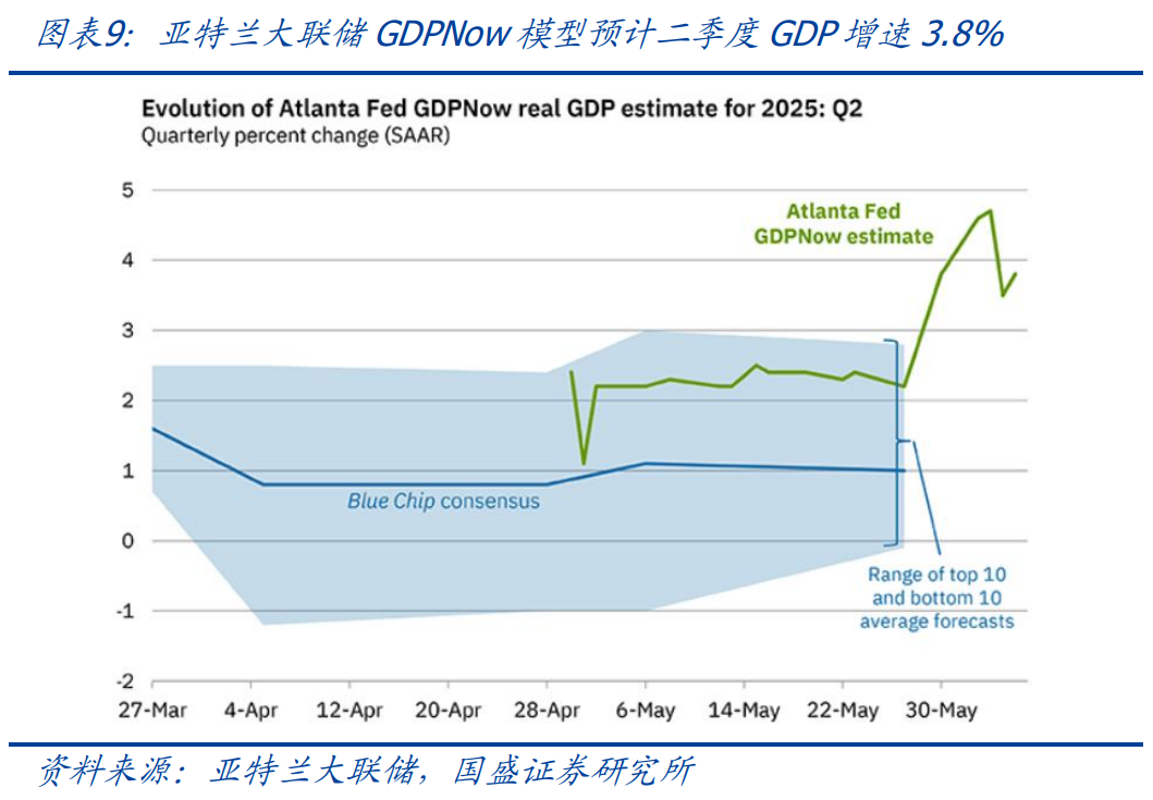 4、未来2个月有两大事件需重点关注:一是贸易协议能否达成(中国8月12日,其他国家7月9日),二是特朗普“大美丽法案”能否通过参议院(政府8月面临停摆风险),二者将在很大程度上决定对美国经济前景的判断。
