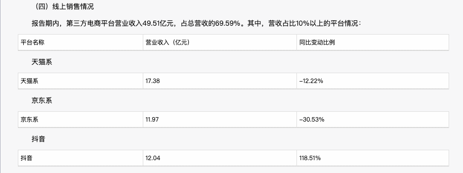 根据戎美股份2024年年度报告显示,公司在通过淘宝、天猫平台实现的销售收入占比达99%以上的情况下,其24年总体营收还是下降了10%以上。