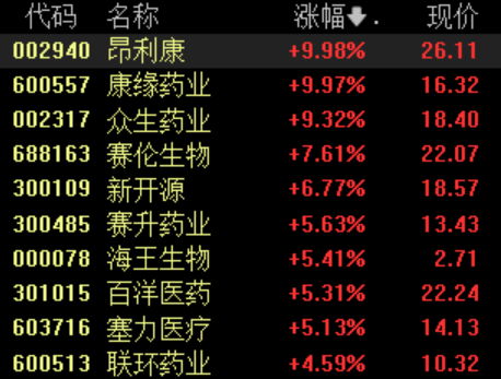 塞力医疗逼近涨停,新开源、昂利康、联化科技、众生药业、睿智医药等集体高开。