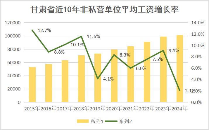 非私营单位平均工资涨幅基本上都低于4%,最低的甘肃只有2.1%,而2023年涨幅高达9.1%。非私营单位平均工资和私营单位平均工资涨幅大降,至少两类人受影响。