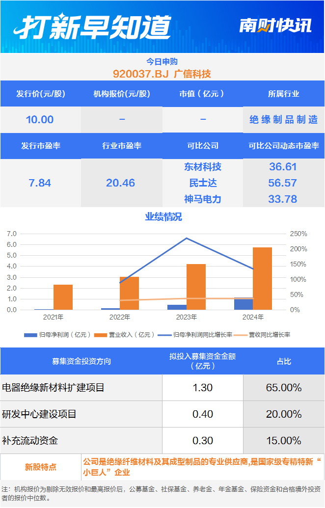 6月17日,有一只新股申购,为北交所的广信科技(920037.BJ)。