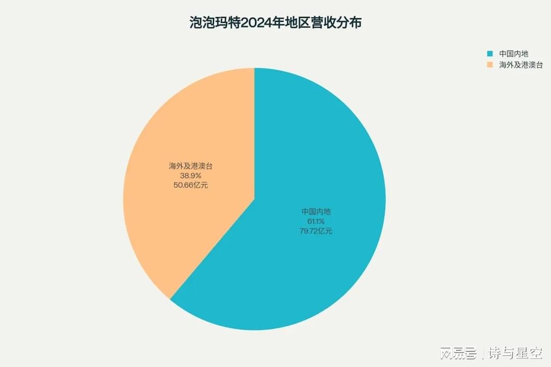 2024年泡泡玛特地区收入结构发生显著变化,中国内地营收79.72亿元,同比增长52.3%,占总营收的61.1%。
