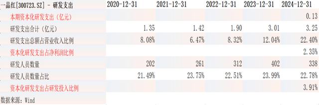 然而,一品红实际的研发投入增长并没有那么夸张。2024年,其研发支出合计3.25亿元,相比2023年增加了2400万元。
