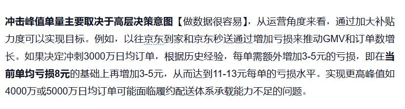 京东:据调研披露日单量约为1800-2000万单,在补贴高峰期间,日单峰值能够触达2500万单。