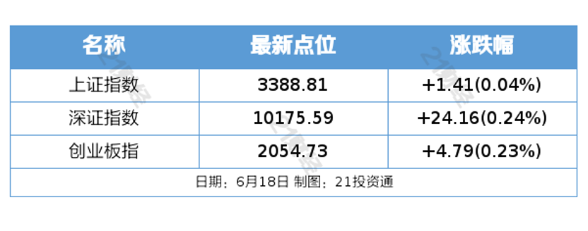 6月18日,市场全天探底回升,三大指数小幅上涨。沪深两市全天成交额1.19万亿,较上个交易日缩量161亿。