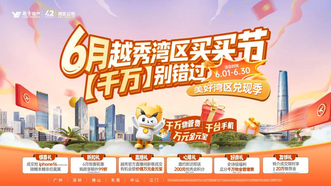 恰逢618,越秀地产适时推出了“美好湾区兑现季”年度重磅活动,不仅为湾区购房者带来了诚意满满的专属优惠,更有机会赢取千万物业管理费、千台手机、万元金元宝等多重惊喜好礼。