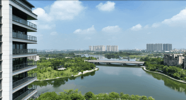 例如,越秀·御湖台坐落于狮山博爱湖心,三面环湖,拥揽1800亩湖光,将湖畔的宁静与壮阔融入业主的生活日常。