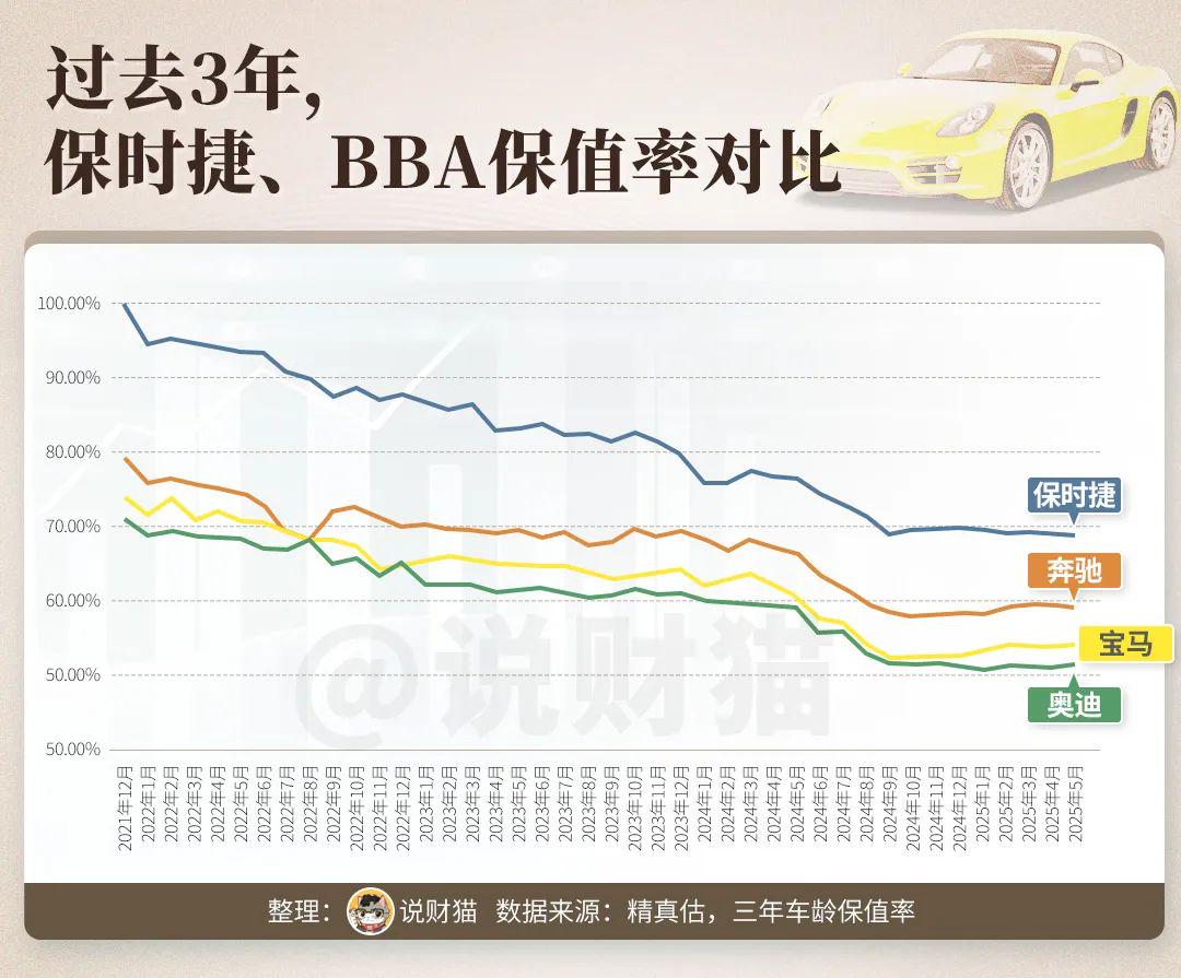 过去三年,保时捷的保值率, 从100.1%变68.8%,跌了超过30% 。