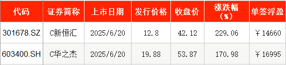 6月20日,新恒汇在深交所正式挂牌上市,发行价为12.8元/股,截至上市首日收盘,该股报42.12元/股,涨幅为229.06%。以收盘价计算,投资者中一签浮盈为1.47万元。