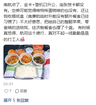 前春秋航空的空乘人员在下面留言,“这是空乘自己的工作餐,给了你就说明机上有一个小姐姐自己没得吃了。空乘很好,也祝你生日快乐。”