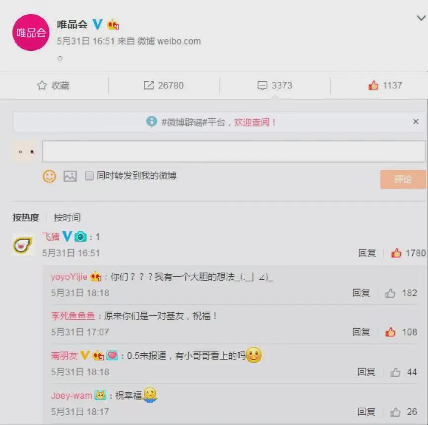 2017年5月底,唯品会突然清空了3万条微博只剩下一个“。”
