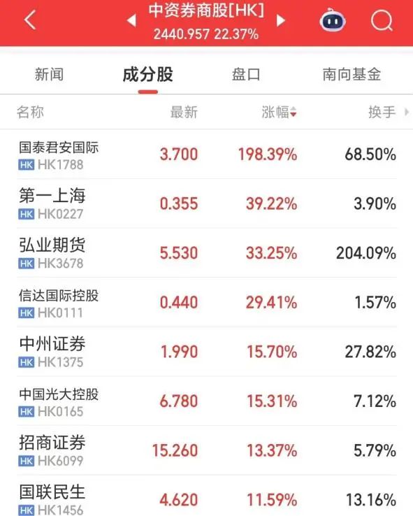 目前来看,可能是港股国泰君安国际拿下虚拟资产交易服务“全牌照”,让市场开始联想中资券商在香港开展稳定币,之前只是炒作金融支付概念的小票,现在直接到证券板块了。港股国泰君安国际涨超190%,信达国际控股暴涨近30%,弘业期货暴涨超33%,整个中资券商股板块暴涨22%。