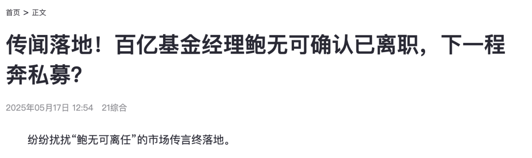 但是,自此以后,公募基金领域或许再也看不到他的杰作了,有传言,鲍无可下一程将是私募基金。