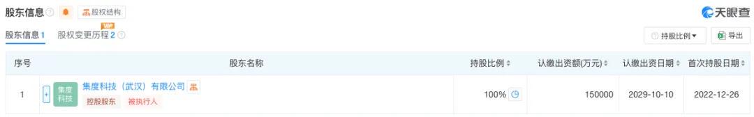 武汉集度汽车服务有限公司于2022年12月成立,法定代表人为夏一平,注册资本为15亿人民币,实缴资本为3.30亿人民币,是一家以从事批发业为主的企业。股东信息信息显示,该公司由集度科技(武汉)有限公司全资持股,后者于2022年11月成立,法定代表人为夏一平,注册资本为40000万美元,实缴资本为30000万美元,是一家以从事软件和信息技术服务业为主的企业,该公司由集度汽车(香港)有限公司全资持股。